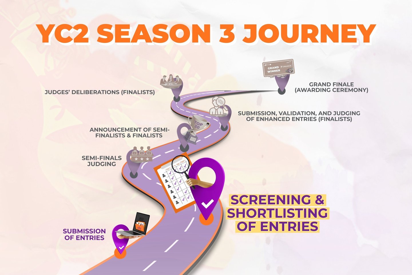 YC2 Season 3 continues to feature the YC2 Regular Edition, as well as the YC2 Elementary and High School Editions. The Regular Edition includes the following categories: Animation, Game Development, Graphic Novel, Online Content Creation, Playwriting, Screenwriting, and Songwriting. Meanwhile, the Elementary Edition and High School Editions cover the categories of Graphic Novel, Online Content Creation, Short Story Writing, and Songwriting.