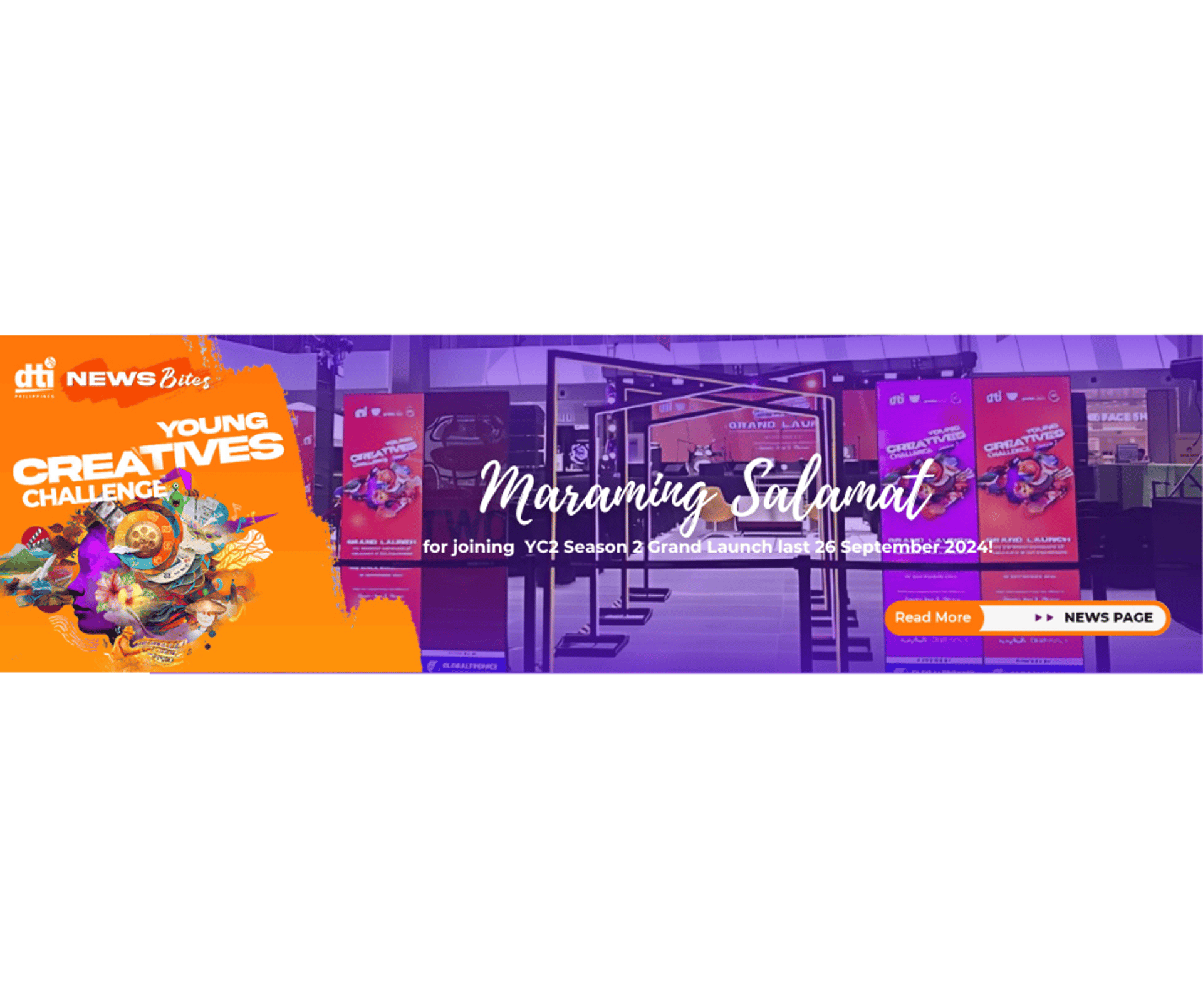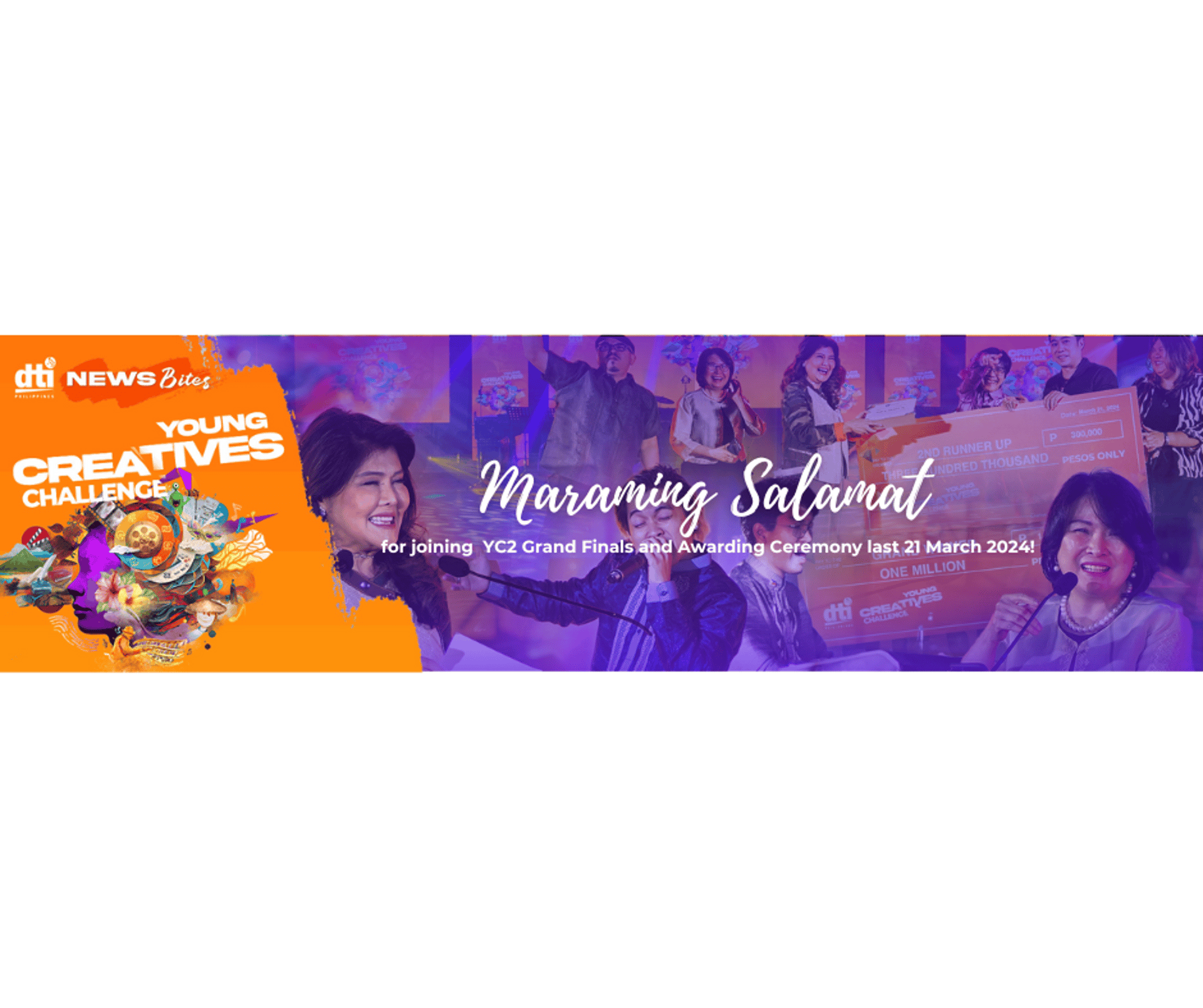 In line with the Malikhaing Pinoy Program, the Department of Trade and Industry (DTI), with support from the Office of Senator Imee R. Marcos, organizes the grandest showcase of creativity—the Young Creatives Challenge (YC2). This nationwide competition aims to inspire, recognize, and showcase creative talents while providing young Filipino creatives with a platform for artistic growth and national recognition.