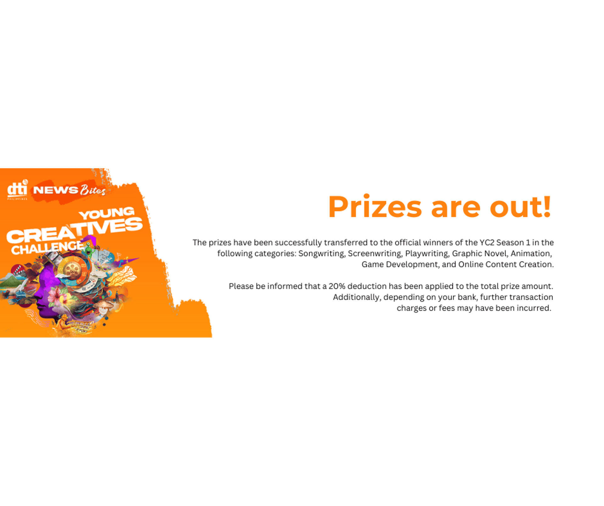 The Young Creatives Challenge (YC2) is the grandest showcase of creativity in the Philippines. Organized by the Department of Trade and Industry (DTI) under its Malikhaing Pinoy Program, this nationwide competition aims to inspire, recognize, and highlight creative talents while providing young Filipino creatives with a platform for artistic growth and national recognition.